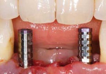 L’implantologie dentaire : c’est la fixation dans l’os d’une racine artificielle en titane qui, émergeant de la gencive supportera une dent (ou élément) prothétique.